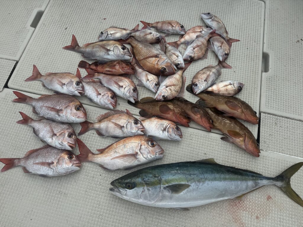 3/7 青物ジギング&鯛ラバ Post date 2026年3月7日 In 釣果情報 朝イチはまず~ジギングへ~2バイト!1キャッチ 今日は顔は見れたが、、、、続かず💧💧💧 鯛ラバへ~ポロポロ釣れお土産は何とか~ 活かしていた春子は最後にリリースされてました~ ご乗船有り難うございました。 3/1 青物ジギング